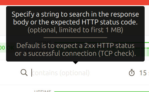 If you type a number between 100 and 599 here, it'll be considered as an HTTP status code instead of string, and will only match against the HTTP responses status code (not the body). Updown will still follow 3xx redirections (unless they match the expected status code) until it finds the expected HTTP status code.